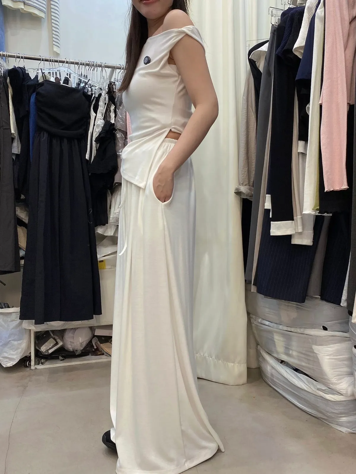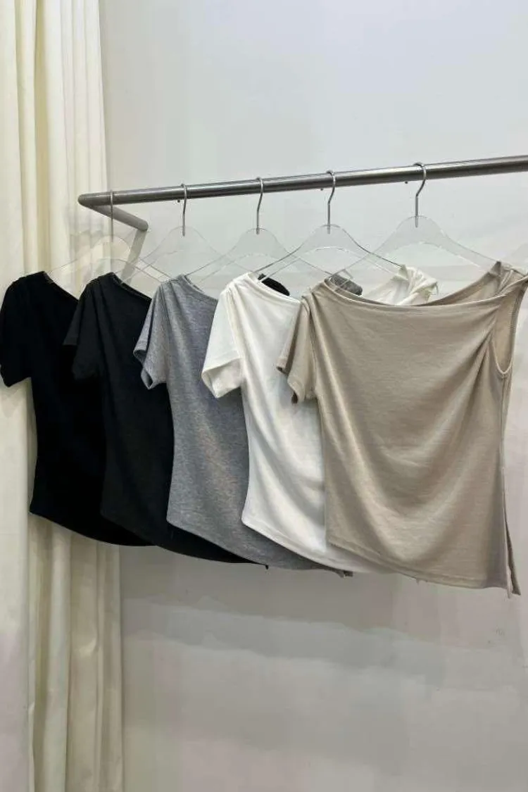 5色彈彈斜肩上衣