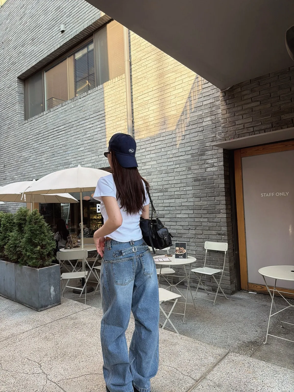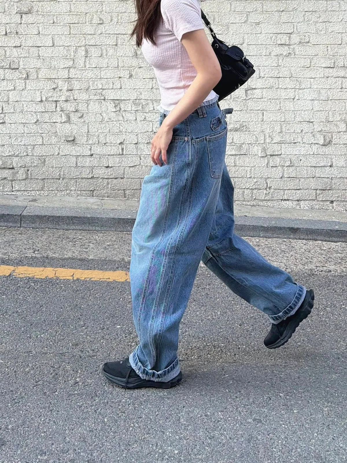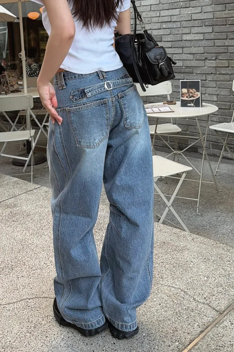 立體折線釦環褲