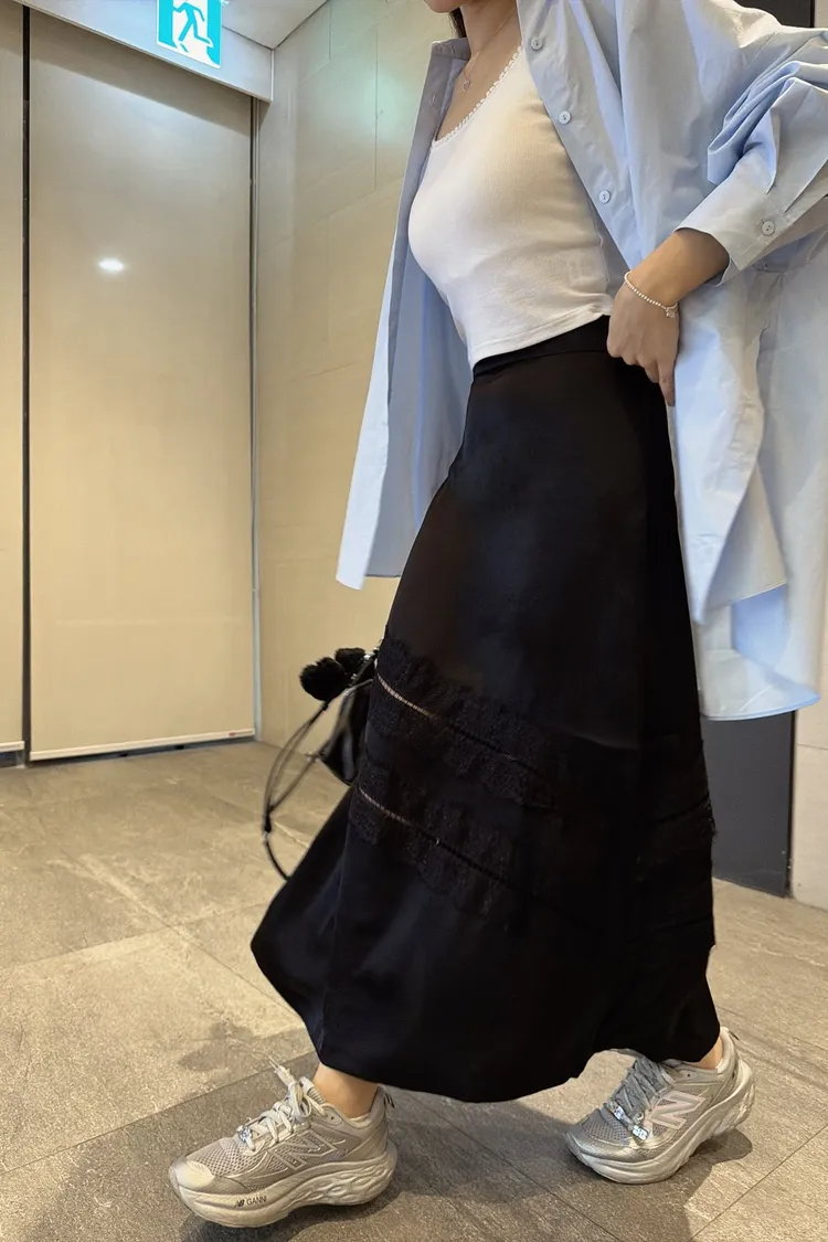 拼接滑面蕾絲裙