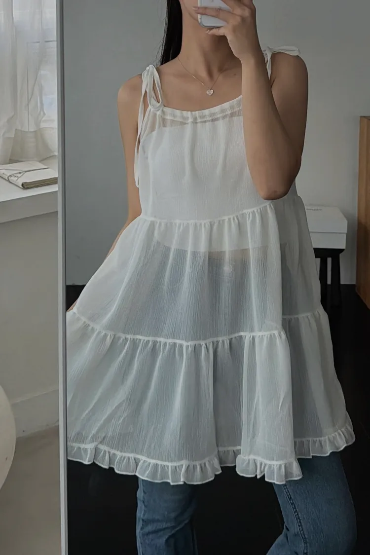 透視感背心紗洋裝