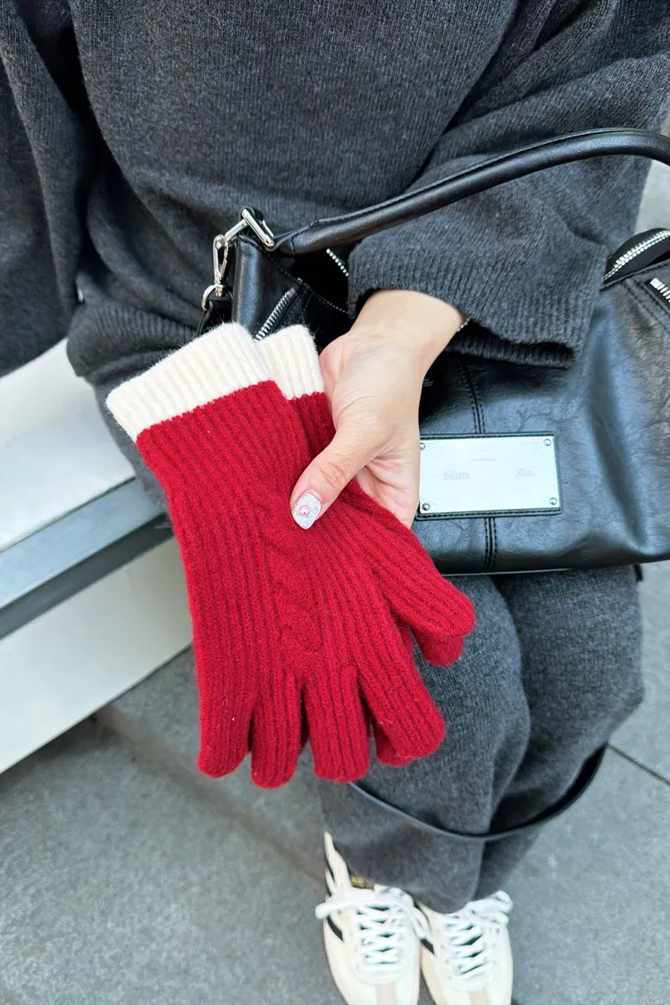 撞色手套