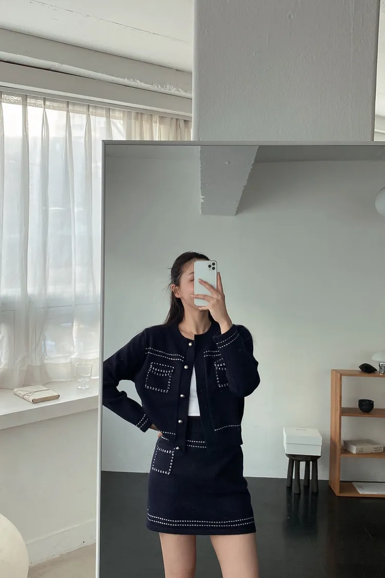 車邊短裙針織套裝