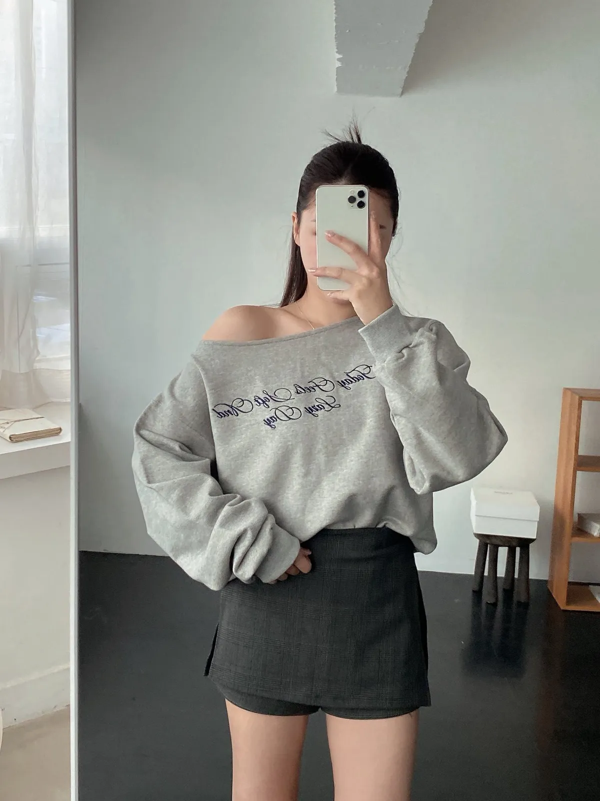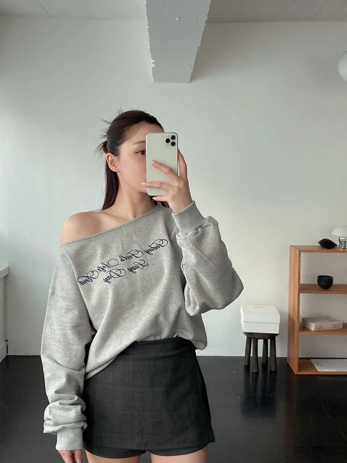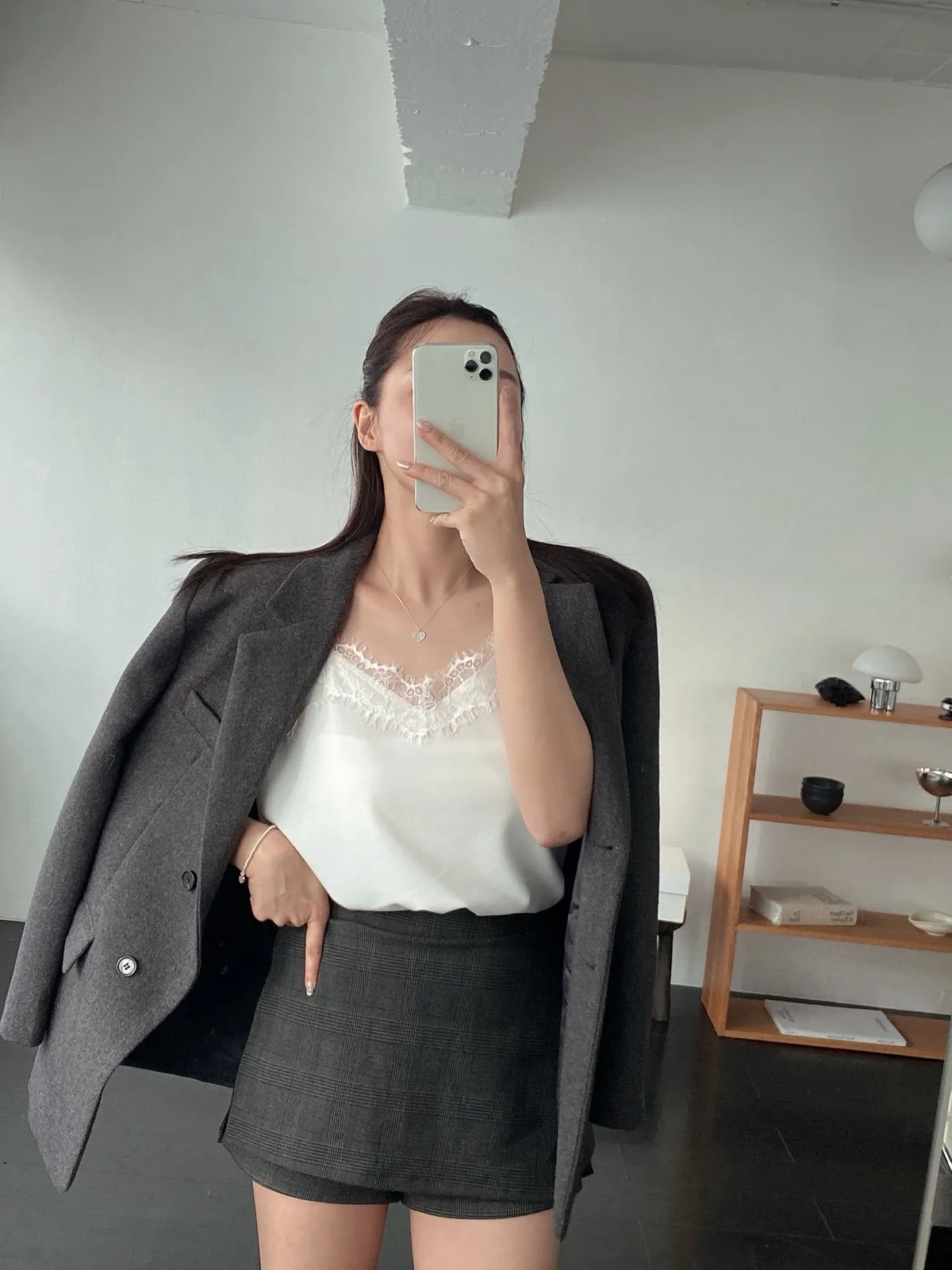 深灰格紋褲裙