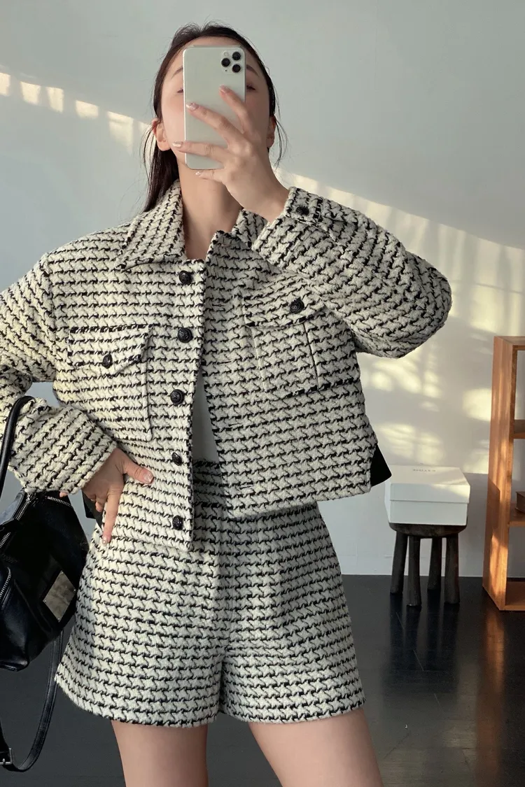 千鳥格紋套裝